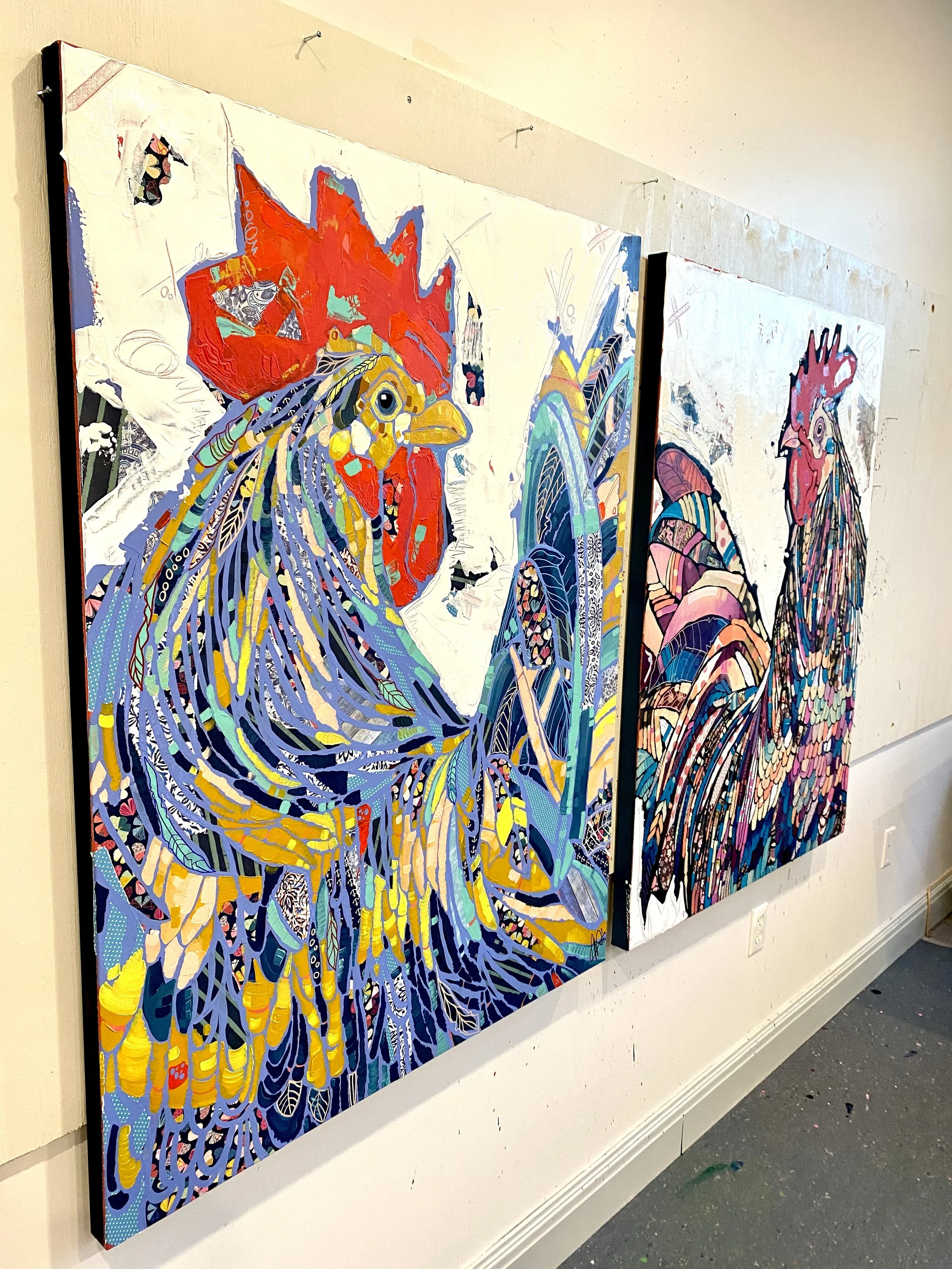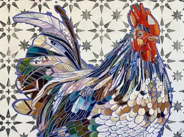 Visit Available inventory to find a rooster of your very own or get in touch if you would like to commission artwork. We will connect you with the appropriate gallery.